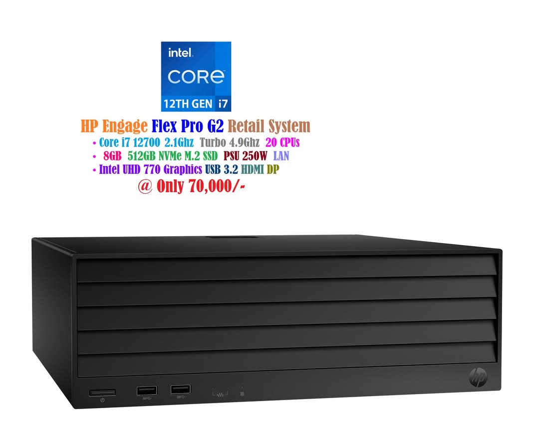 HP Engage Flex Pro G2 Retail System PC SFF Core i7 12700 2.1Ghz 20 CPUs 8GB 512GB NVMe SSD PSU 250W HDMI DP LAN Intel UHD 770 Graphics