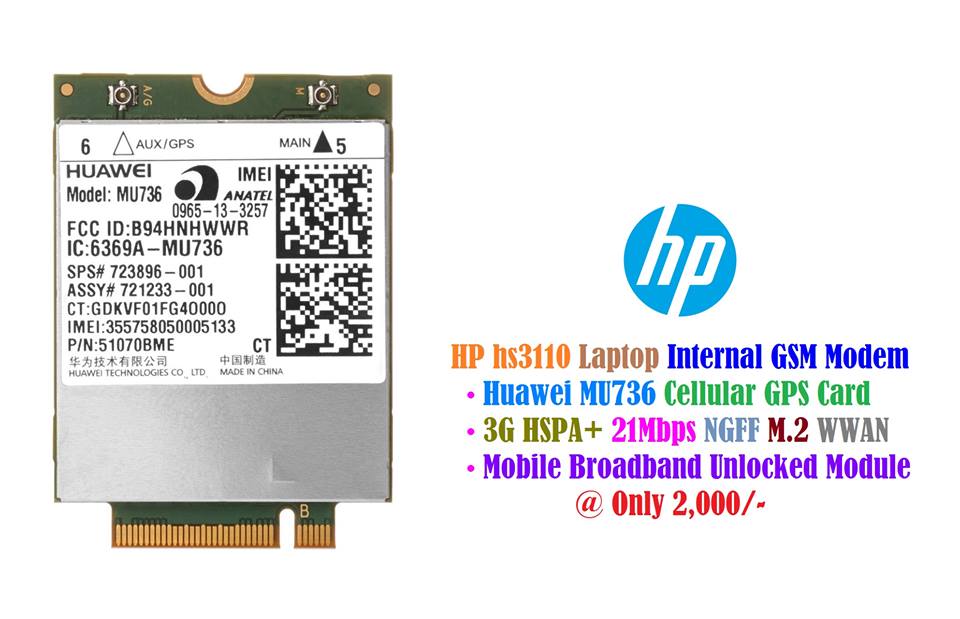 HP hs3110 3G 21Mbps M.2 WWAN Modem at 2,000/-