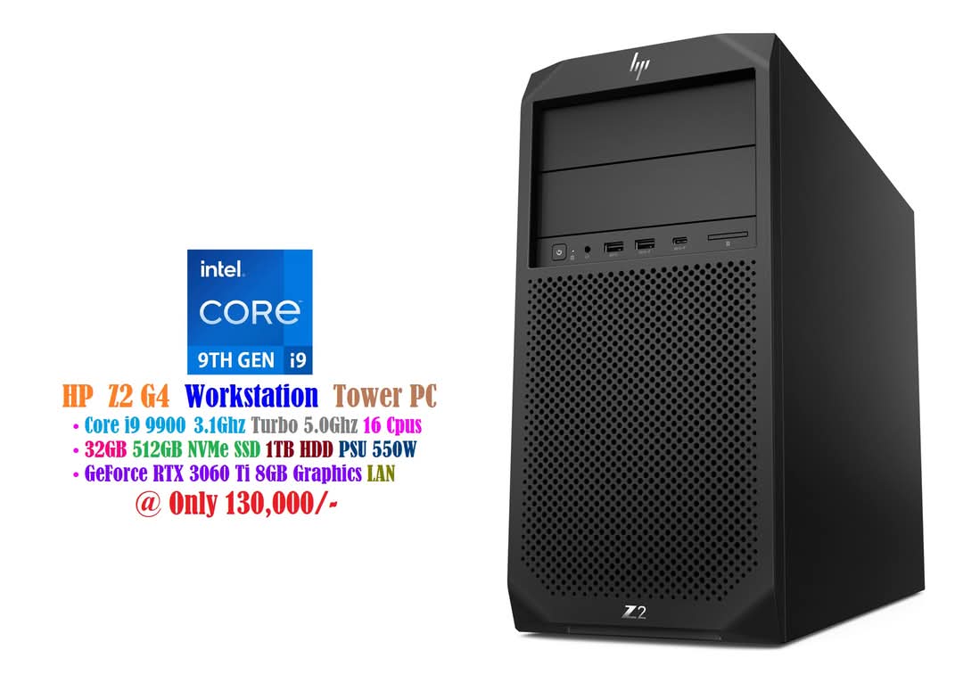 HP Z2 G4 Workstation Gaming Tower Core i9 9900 3.1Ghz 8 Cores 32GB 512GB NVMe SSD 1TB HDD PSU 550W GeForce RTX 3060 Ti 8GB Graphics