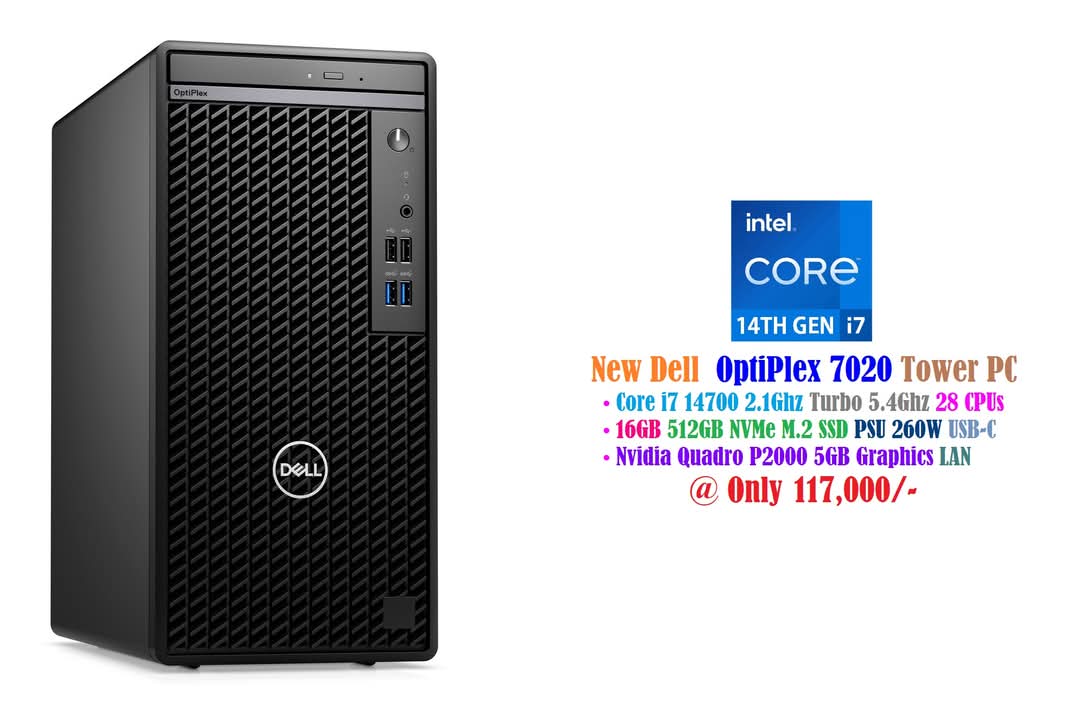 New Dell OptiPlex 7020 Plus Tower Core i7 14700 2.1Ghz 24 CPUs 16GB 512GB NVMe SSD PSU 260W Nvidia Quadro P2000 5GB Graphics LAN