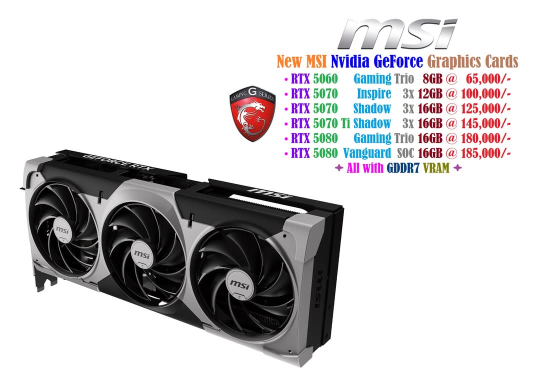 • RTX 5060 Gaming Trio 8GB at 65,000/-